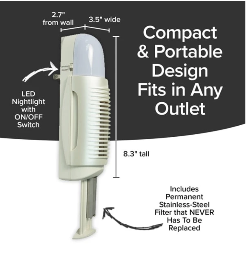 Air Police is the advanced air purifier that’s portable and plugs right into the wall. Don’t let the size of this product fool you as it is still powerful enough to clean air fast. It gets rid of smelly odors, musty smells, food odors, and even dander from pets. With its ON/OFF light, Air Police makes a great nightlight for the kids’ rooms, too! Running completely silent, Air Police air ionizer is great for the bedroom.