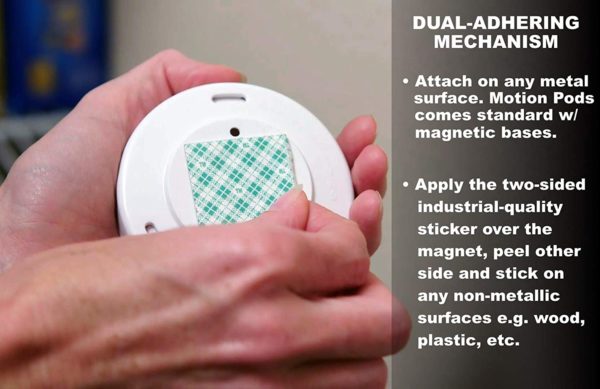Motion Pods come standard with magnetic base to provide a degree of semi-portability. Attach it on to any metallic surface, detach as needed should you need illumination in another corner.