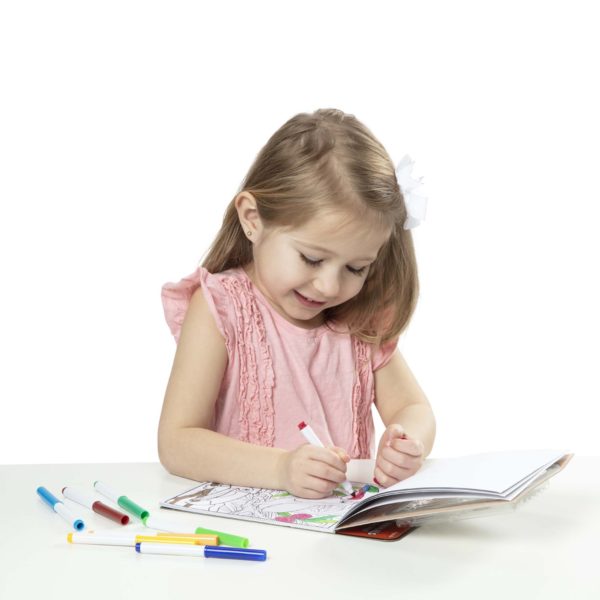 This is one take-along coloring pad that’s just like magic! Use the eight included vibrantly colored markers to color in the 15 pattern-reveal scenes featuring wild animals galore (elephants, toucans, zebras, hippos, bears, and more), and see different patterns magically emerge. The sturdily bound 6-inch by 10-inch pad with built-in marker storage is easy to take anywhere and encourages development of fine motor skills, hand-eye coordination, and artistic creativity! 4+ years