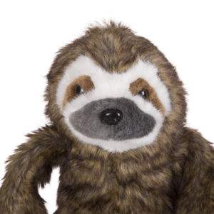 Kids will love hanging around with this adorable and cuddly sloth! Its long arms clasp together with self-stick tabs so this sloth is a terrific hugger. When its not catching a piggy-back ride or hanging from a lamp or chair, the sloth sits on its own about 14.5 inches high. The lushly colored fur is both durable and silky-soft to the touch, while quality construction means it will hold up to years of hugs and snuggling. Detailed features include a sweet tri-colored face, squishy nose, soulful eyes, and long (but soft!) claws on its bendable arms and legs. 3+ years
